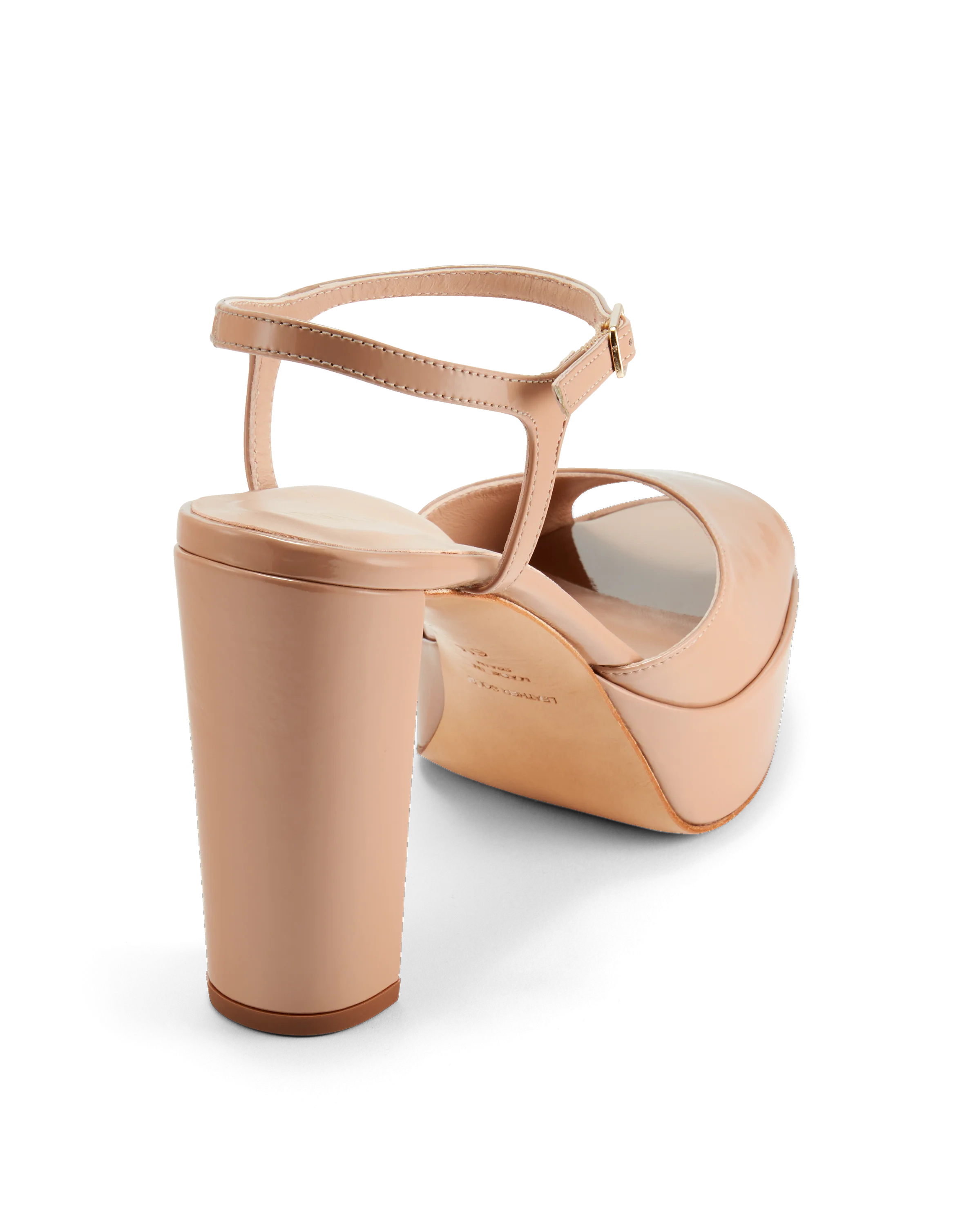 Our platform sandal delivers comfort at an enviable height. The posted back straps keep your foot secure while you enjoy the look of a high heel that feels much lower. Our custom-designed insole cradles the foot and provides support for hours of wear.