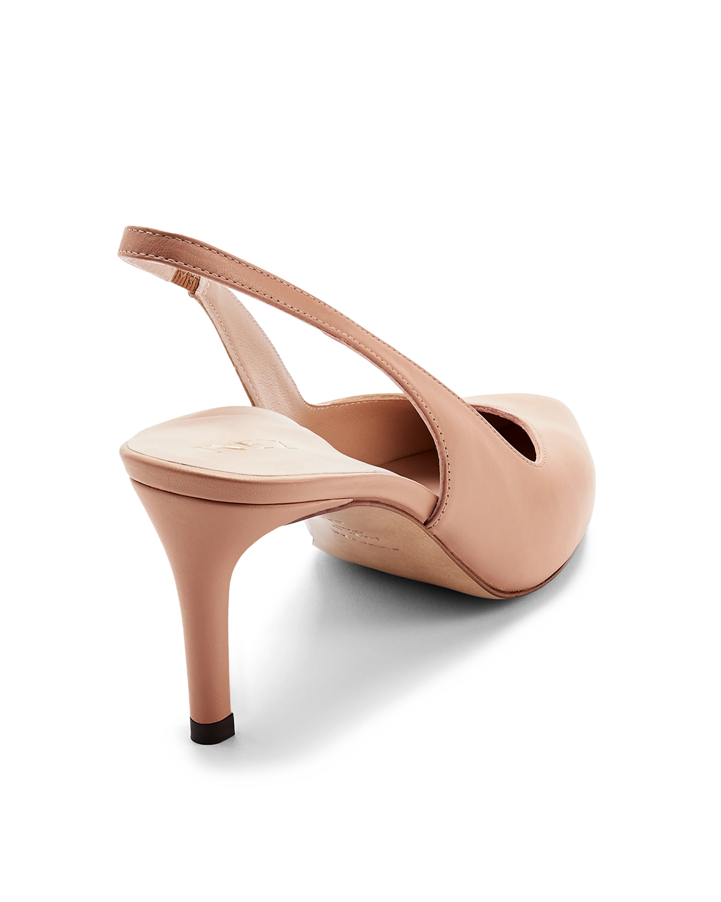 Designed to balance impact with elegance, the Mia features a V-shaped throat line that elongates the leg, mirrored by a refined pointed toe. A slingback strap with hidden elastic ensures a secure, held-on fit, while our signature comfort insole cushions every step.