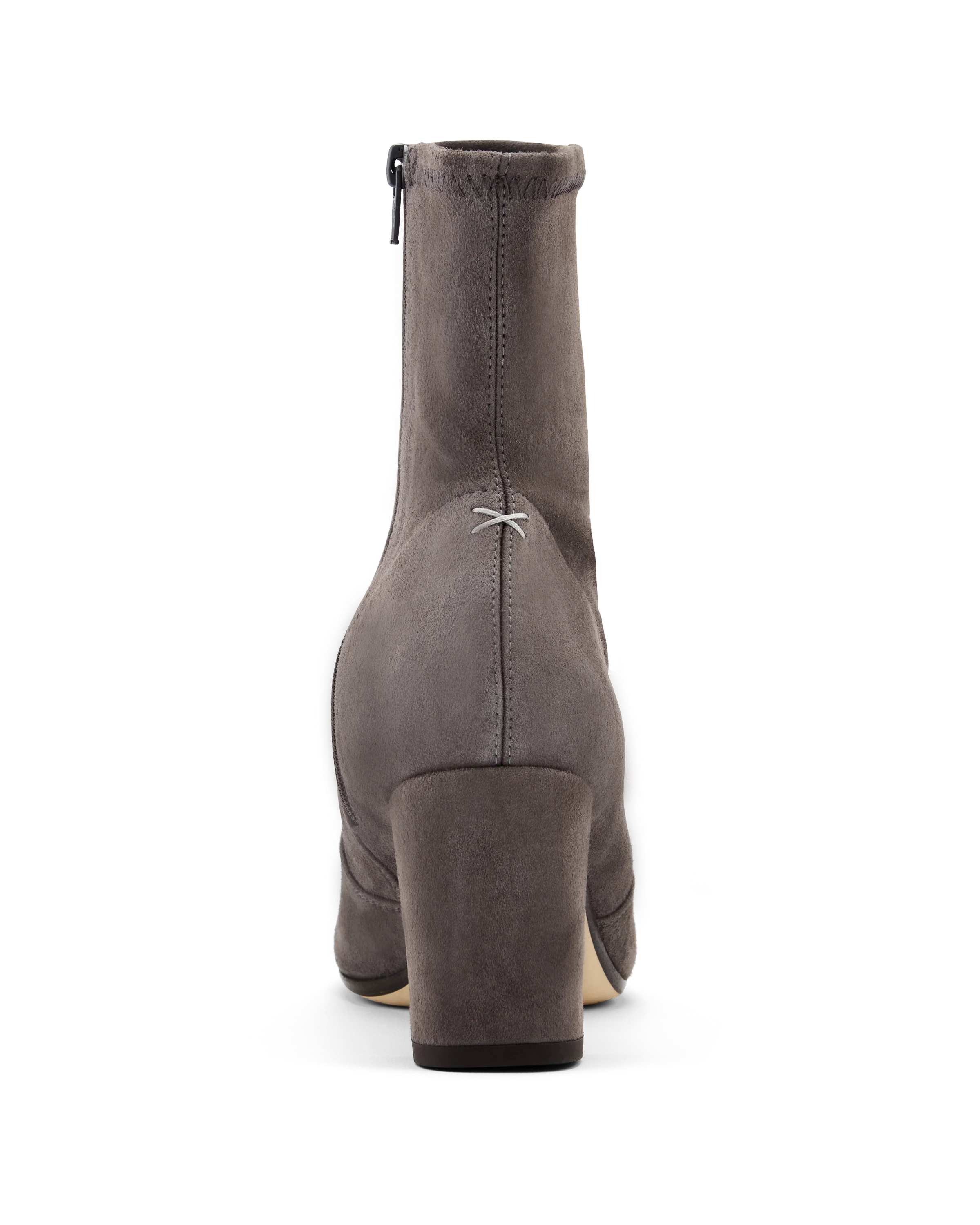 A mid-heel bootie with a soft stretch suede upper that hugs the foot providing a tapered, slim look. The "snip" toe provides a generous fit in the toe box, while a plush proprietary insole cushions your foot.