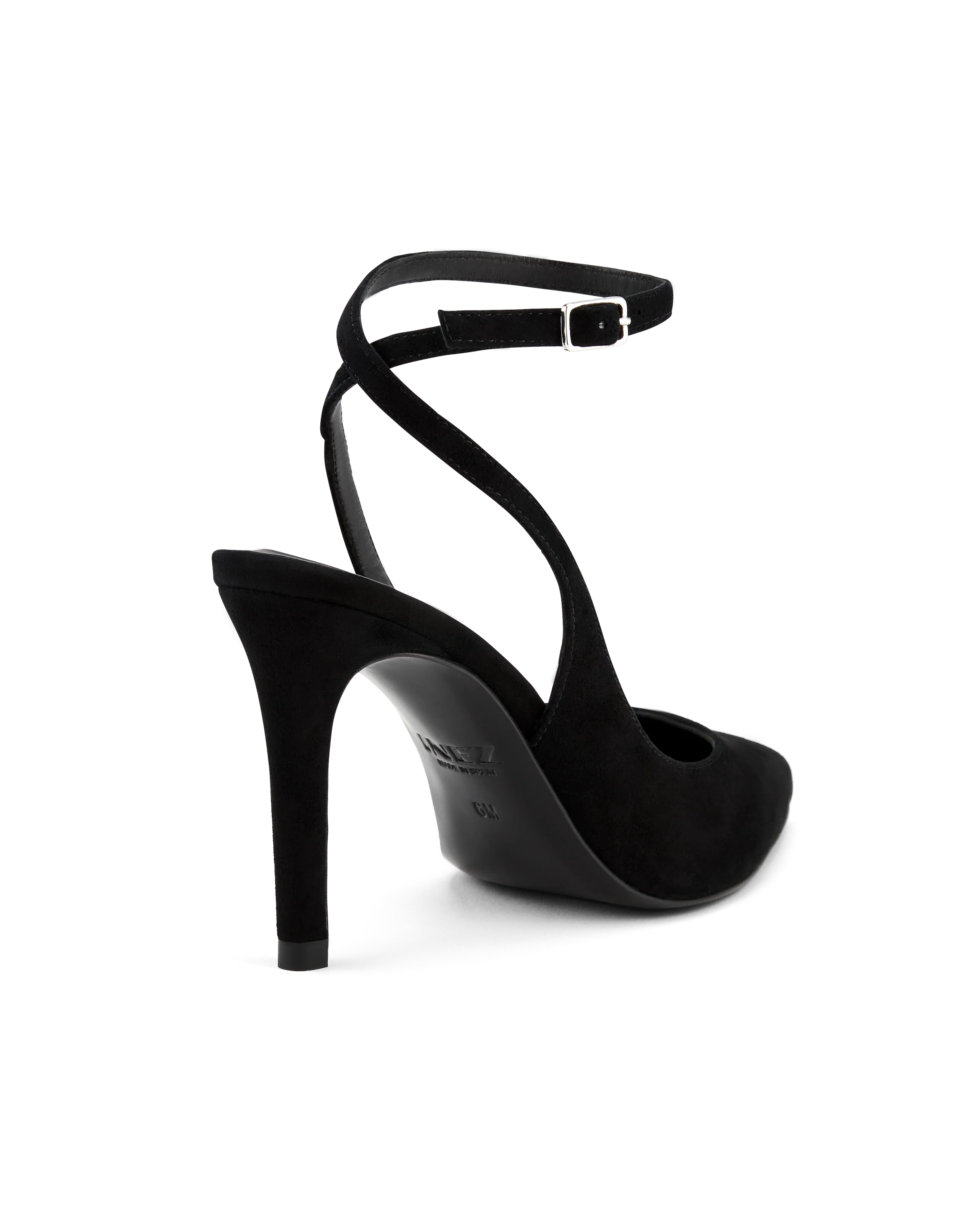 Portia is the definitive power pump with a refined stiletto heel, pointed toe, and slim adjustable ankle wrap. Crafted in soft suede—a timeless black or seasonal grey—and finished with our signature comfort footbed for lasting comfort.